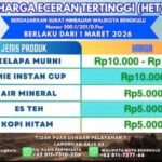 Bengkulu, – Pemerintah Kota Bengkulu melalui Dinas Pariwisata resmi menetapkan Harga Eceran