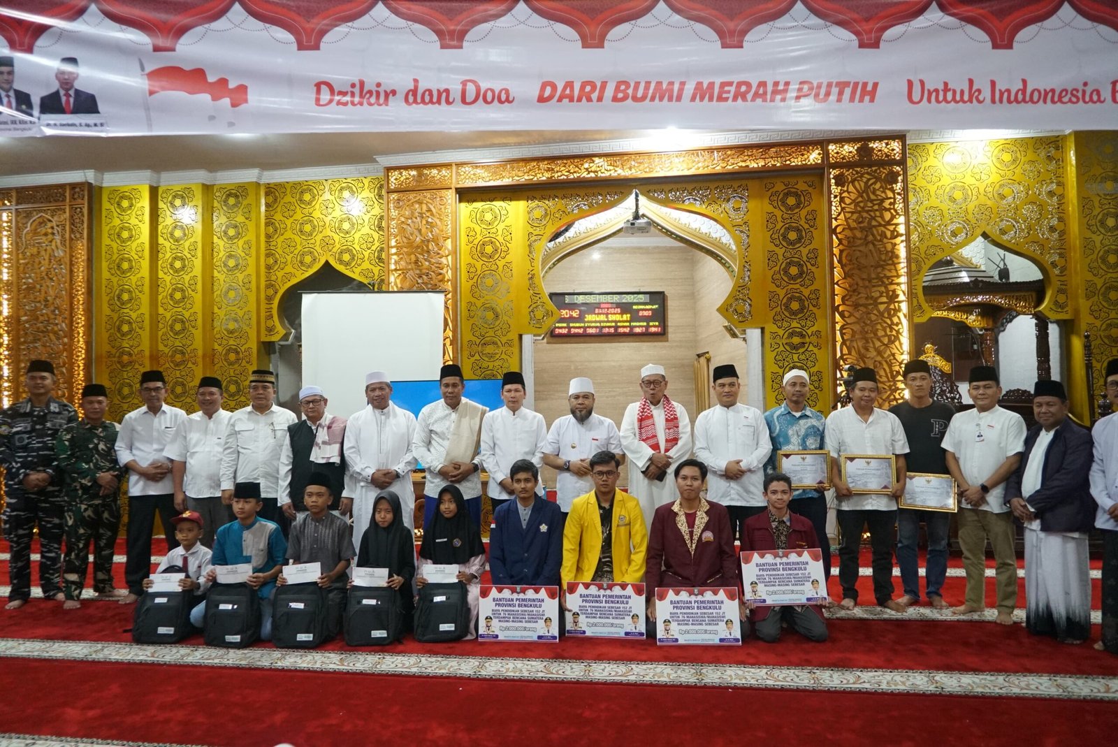Bengkulu, – Gubernur Bengkulu Helmi Hasan menghadiri zikir dan doa bersama akhir tahun yang dirangkaikan dengan penarikan undian reward bagi masyarakat taat pajak tahun 2025, bertempat di Masjid Raya Baitul Izzah, Kota Bengkulu, Rabu (31/12).