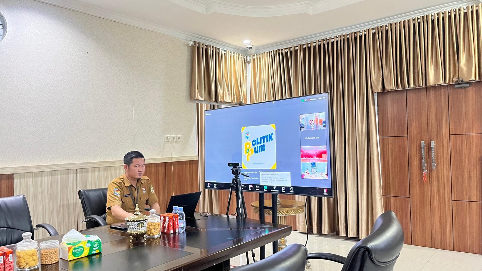 Bengkulu, – Penjabat Sekretaris Daerah Provinsi Bengkulu, Herwan Antoni, mengikuti Rapat Koordinasi (Rakor) Dukungan Stabilitas Sosial dan Politik Daerah melalui Zoom Meeting di Ruang Sekretariat Daerah Provinsi Bengkulu, Selasa (2/9).