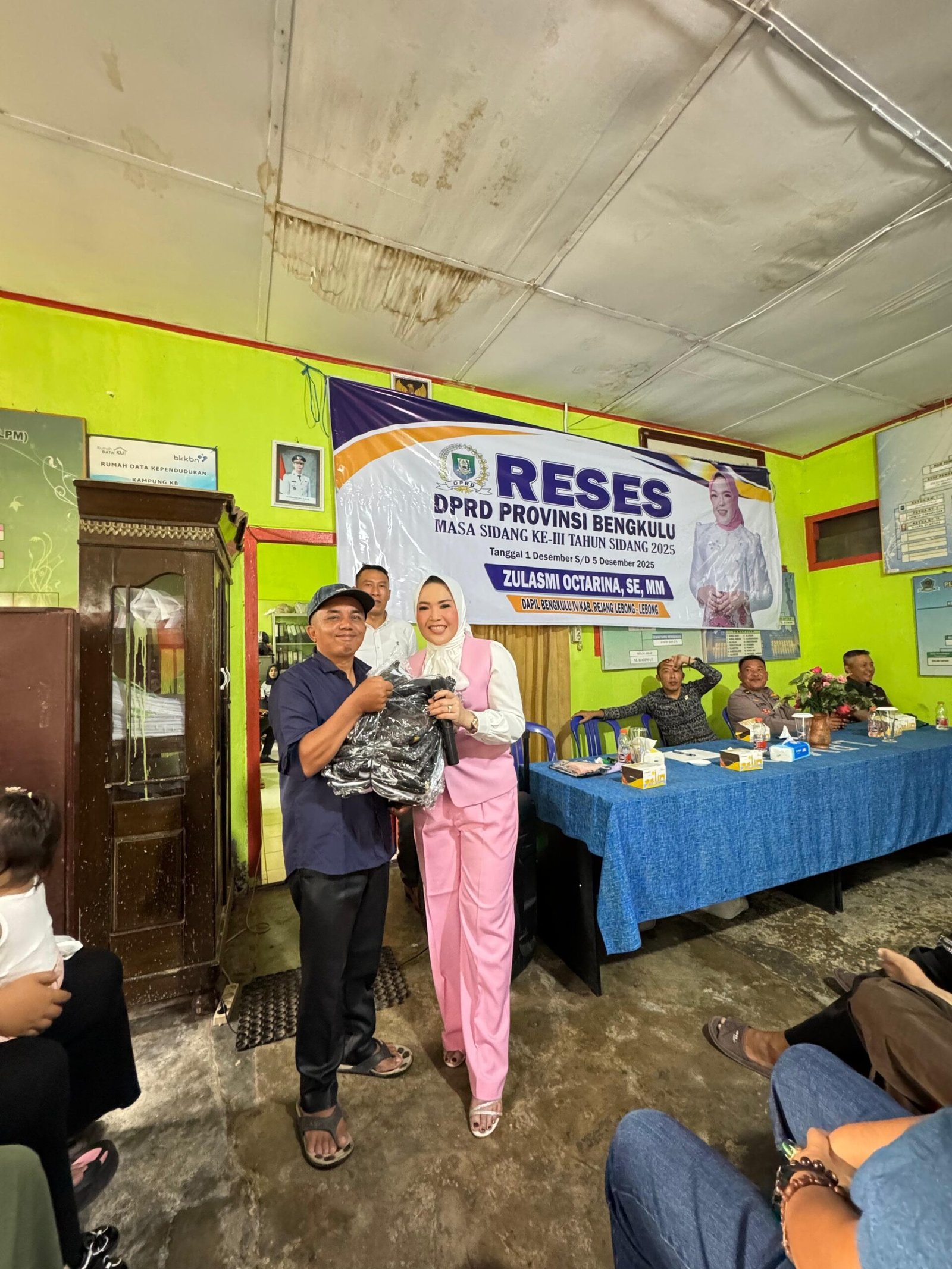 Di sela kegiatan reses, Zulasmi Octarina menyerahkan bantuan satu set seragam bola voli kepada Karang Taruna sebagai bentuk dukungan terhadap aktivitas kepemudaan di wilayah tersebut. Ia menegaskan seluruh aspirasi masyarakat akan menjadi bahan tindak lanjut dalam pembahasan program pembangunan provinsi.