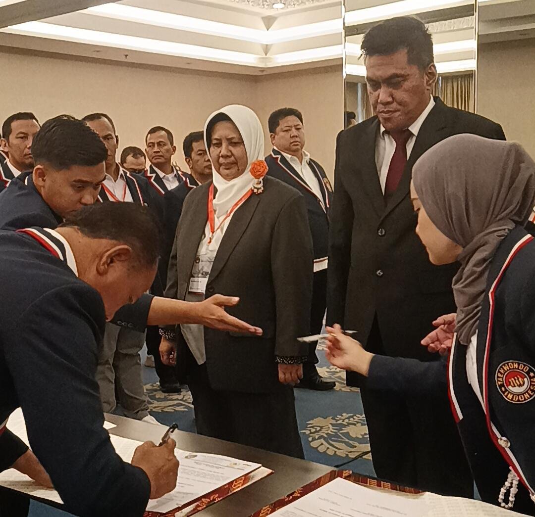 Pelantikan dan pengukuhan tersebut dipimpin langsung oleh Ketua Umum Pengurus Besar (PB) TI, Letjen TNI Richard Tampubolon, S.H., M.M., pada penutupan Rapat Kerja Nasional (Rakernas) Taekwondo Indonesia yang digelar di Jakarta, Kamis (16/4).